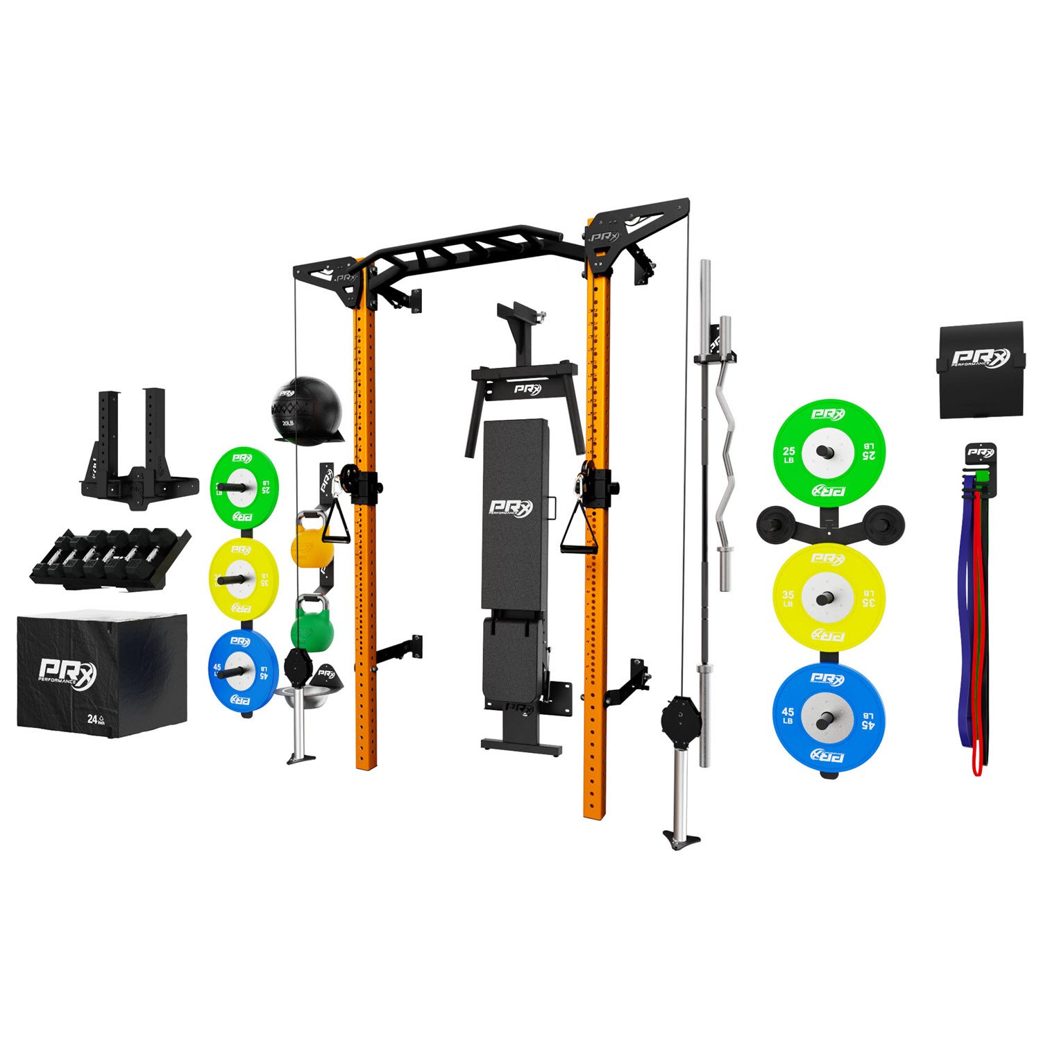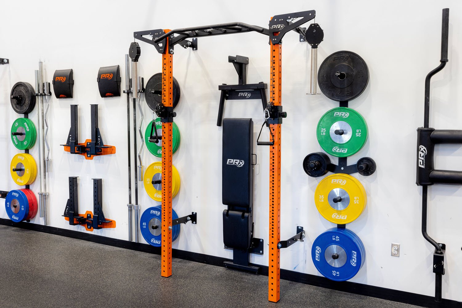 Gym equipment designed to save you time and space. PRx Performance’s flagship wall-mounted racks fold up in seconds so you can lift big in small spaces. See the full line of PRx Performance gym equipment here.
