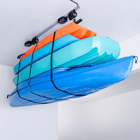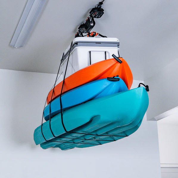 Maximize your garage space with the Universal XL HD Lifter by storing large items on the ceiling. The Universal XL HD can lift 200 lbs including the lifting accessory. Move items out of your walkways or parking spots. Lift and store an array of different items, such as multiple kayaks, canoes, ladders, roof top tents and more.