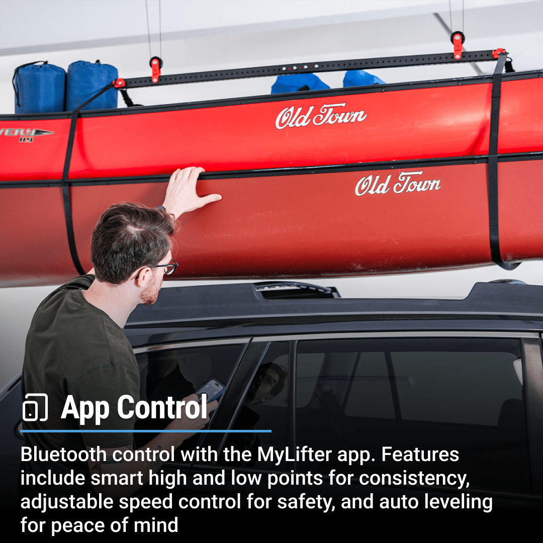 With a mesh wire platform, the 4×8 Platform Storage Lifter can lift awkward and heavy items, such as kayaks, ladders, seasonal equipment, and holiday decorations. All four MyLifter’s sync to give you a smooth and seamless operation, even with multiple items.